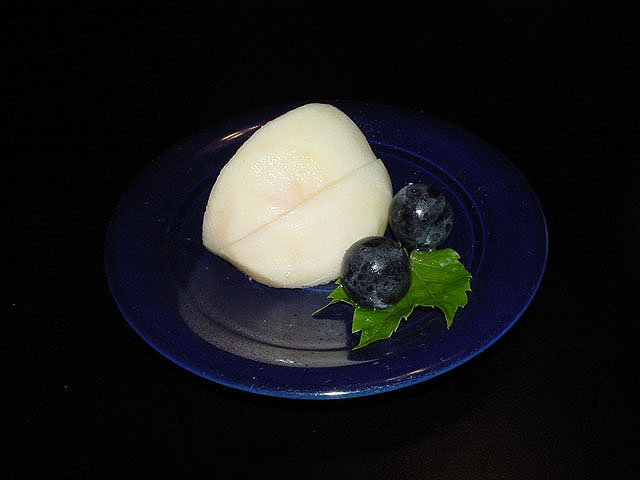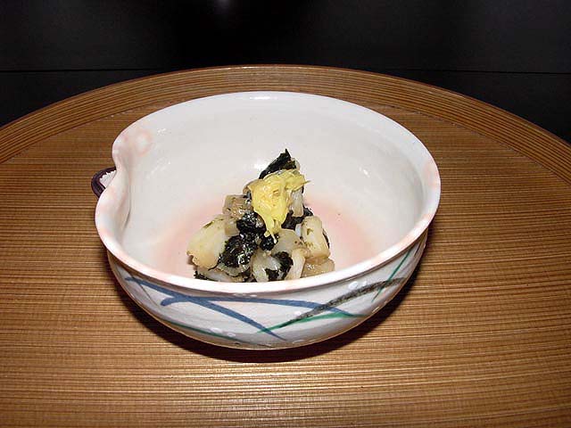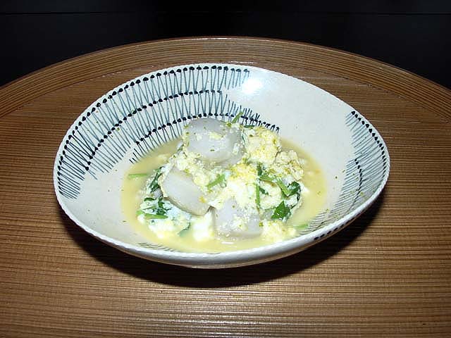 炊き合せ 鱧の子玉子〆 小芋三葉・ふり柚子 |