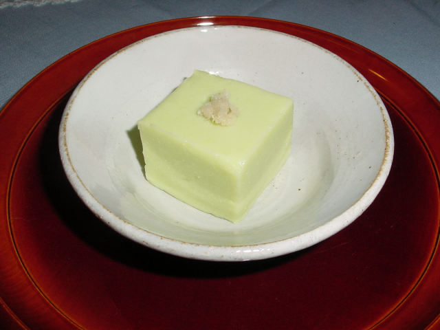 1時間もすれば、爽やかなうす緑のうぐいす豆腐の出来上がりです。