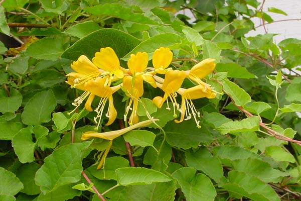 すいかずら{忍冬}白い花が咲いて、黄色になるのがオリジナル