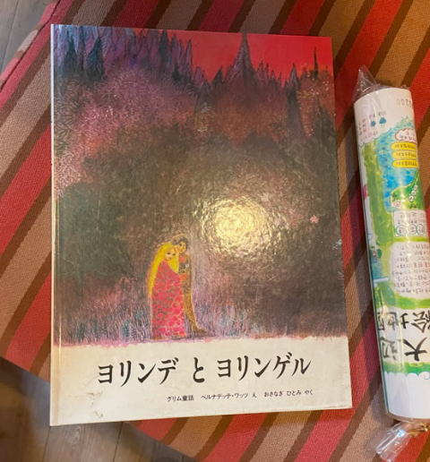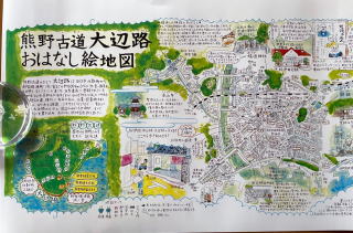 絵本の隣に写っているのは熊野古道の大辺路の絵地図の巻物です。