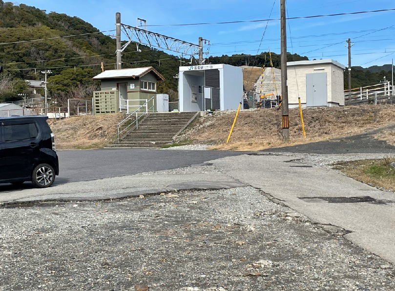 田並劇場に面した素朴なたたずまいのJR田並駅。