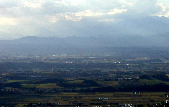 那須連峰(那須山という名前はありません、茶臼岳と朝日岳、鬼面山です)山頂にはもう白いものが見えます。