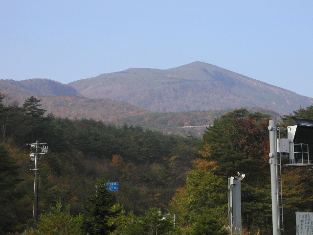 見えてきました会津磐梯山、この山の南斜面が温泉街とスキーリゾート