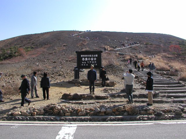 ここが登山口、頂上は目の前 晴れてはいるものの風が強く