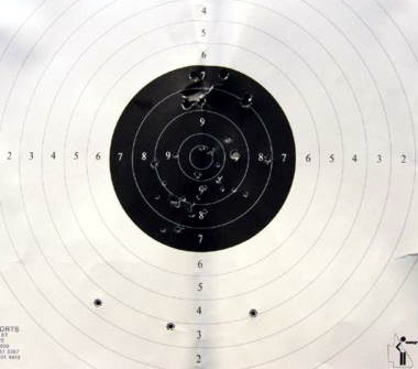 9ミリは照星(銃口に付いている凸)と照準(手前についている凹)をきちんと合わせて引き金を引きますが、其のとき