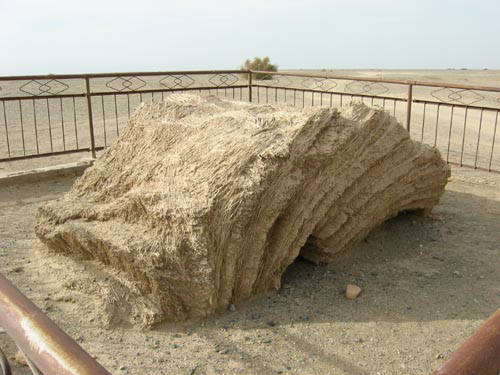 近くには漢の時代の長城(北京の長城とは違いここのは土塀)の崩れかけた後が砂漠に向かって真直に伸びこれもまた崩れかけた狼煙台の近くには狼煙に使う藁がそのままの形で残っていました。