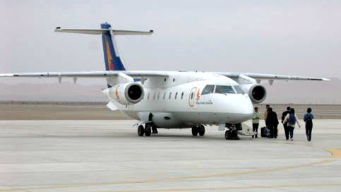<敦煌の空港とドルニエのジェット機33人乗、西安までこれに乗った>