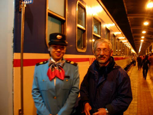 <北京行き寝台列車の車掌さんと>