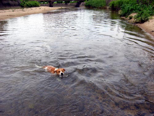 水を少しも嫌がらず、私が行く所は、浅かろうが