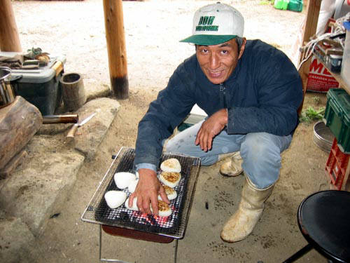 お昼になったので、浩子夫人が炊いてくれたご飯を国王が焼きおにぎりにしてくれました。