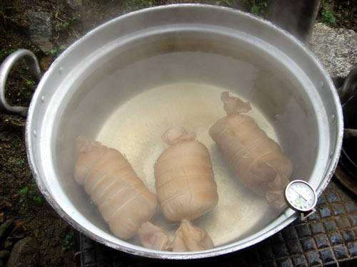 ボイルの行程に入ります、75度で1時間30分、温度管理が大変。