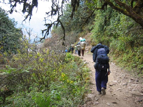 今日の行程は2840mのルクラから2610mのパクディンまでのほぼ下りの2時間半位のコース、途中