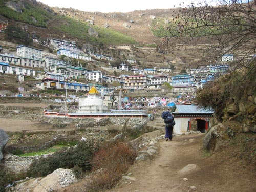 高度が上がるにしたがって段々ひどくなりました。長く苦しい登り道を登ってやっとなナムチェに着きましたが