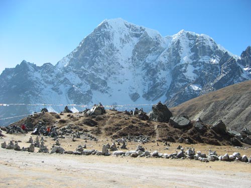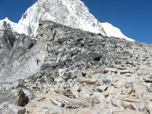 (引き帰した地点、ケルンはエヴェレストで無くなった人たちの慰霊碑)