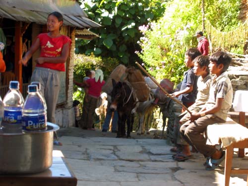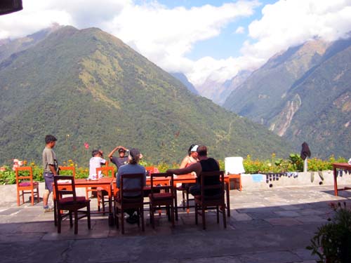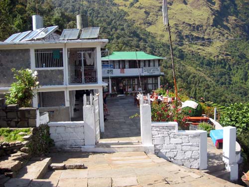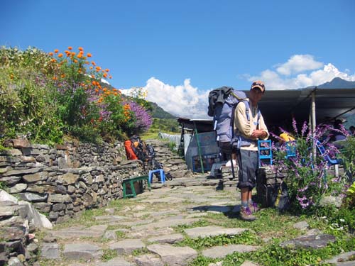 今日は途中茶店で2度お茶を飲んだだけだったので、2時前に今日の宿泊予定のチョムロン(2140m)に着いた。