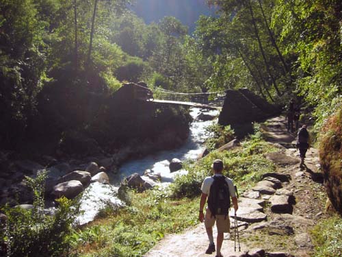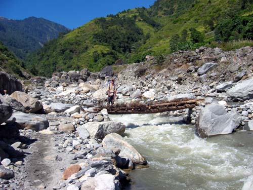 8時半より歩き始めるがモデイコーラという川の横のゆるい上りを約1時間上流に向かって登る。