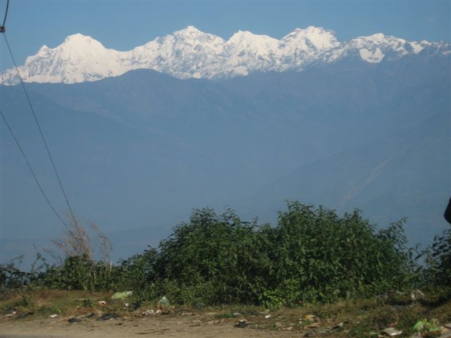 を離れてしばらくすると、ガーニッシュヒマール、マナスルの山並みが見えてきます。11時ごろ