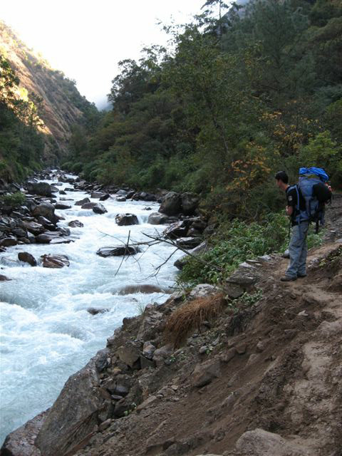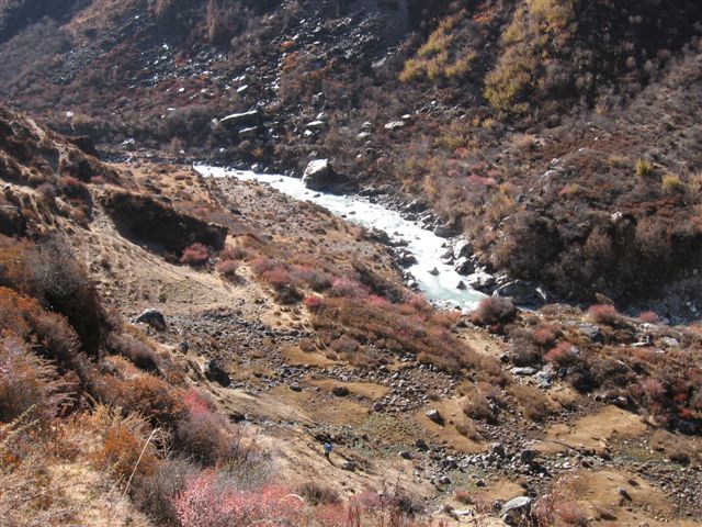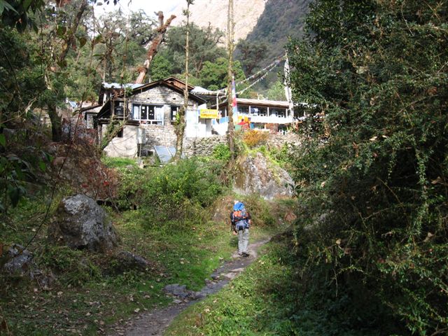 ン川に沿って林間の道を2340mのラマホテルまで行きます。途中バンブーというところで昼