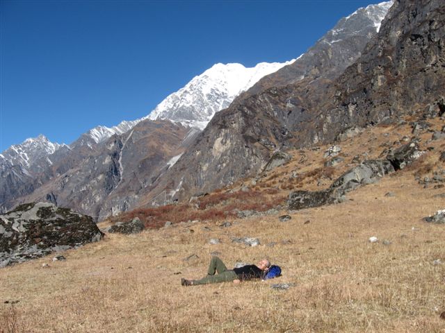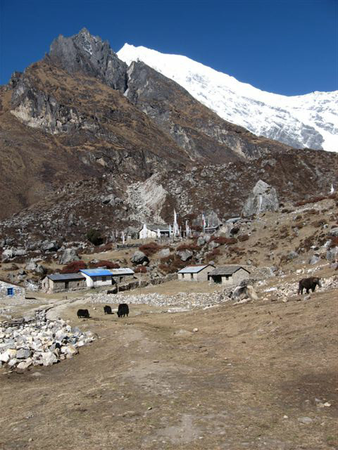 近を散歩しました。この谷の主峰ランタンリルンもやっと顔を見せてくれて、今ヒマラヤにいる