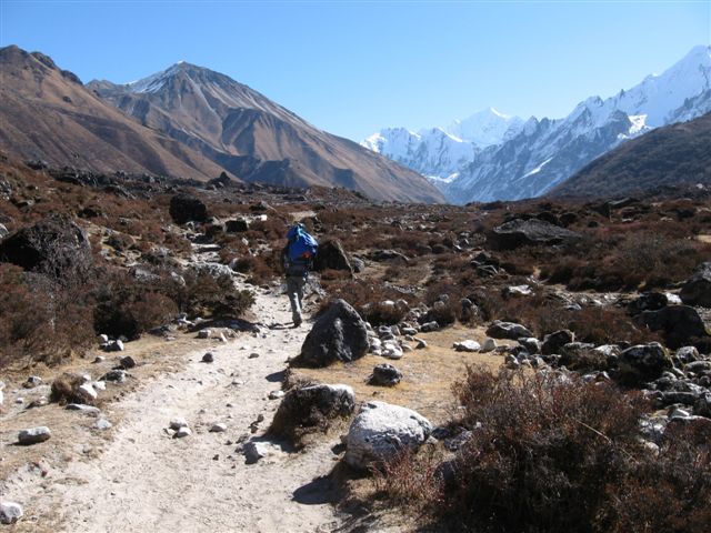 快晴です。今日の行程は今回の目的地キャンジンゴンバ3730mまで。予定どうり4時間