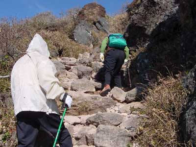 西峰は鎖場のある険しい登りに私たちは敬遠
