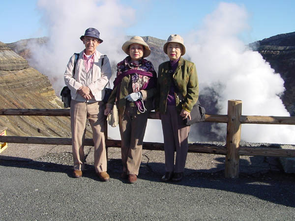 火口のそばで記念撮影。