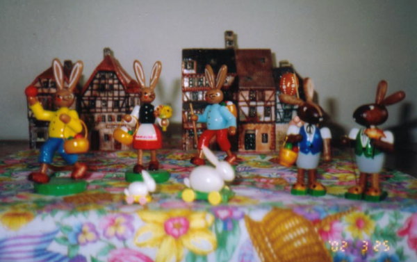 卵や鳥、そしてうさぎの置物が目に付きます。