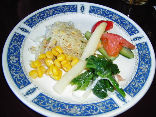付け合せの温野菜もおいしかった。皮付きのまま揚げて