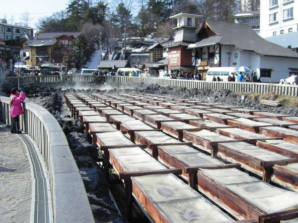 これは湯もみ板。草津温泉のお湯は高温なので、この板でお湯を