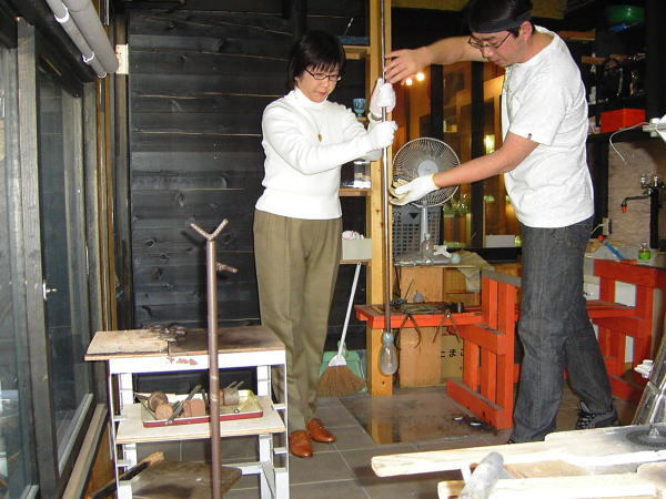 少し吹いたら再び炉に入れて柔らかくし、また吹きます。前よりも少し