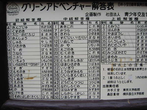 さて、この〜木なんの木なのか・・・?とその答えは下の解答表