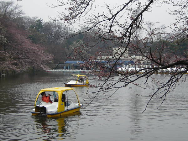 生憎のお天気ですが、ボート遊びに興じる人もちらほら・・・
