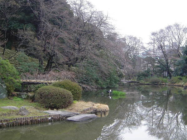 この日は生憎の花曇。この庭園の桜はまだ、まだ・・・