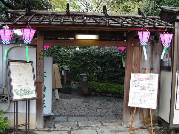 門の脇には、椿山荘のレストランで戴けるお食事の案内が。この時期