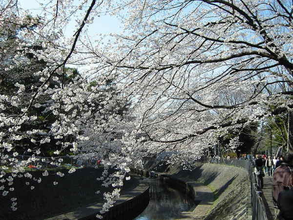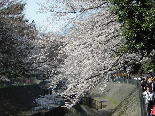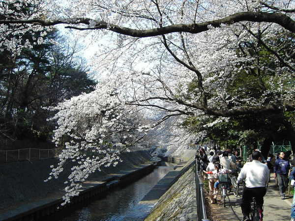お花見を楽しむ人々で賑わっていた善福寺川緑地。