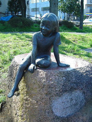 五日市街道に差しかかったところにある「川の声」の少女像。