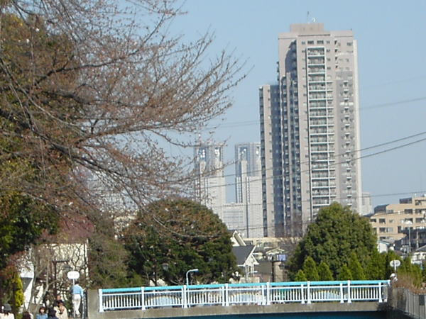 東方向には、高層マンション越しに東京都庁のふたつのビルが見えました。