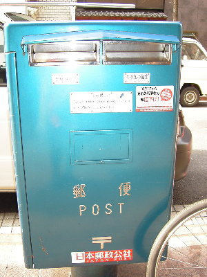 並木通りにあった郵便ポストはブルーでした。