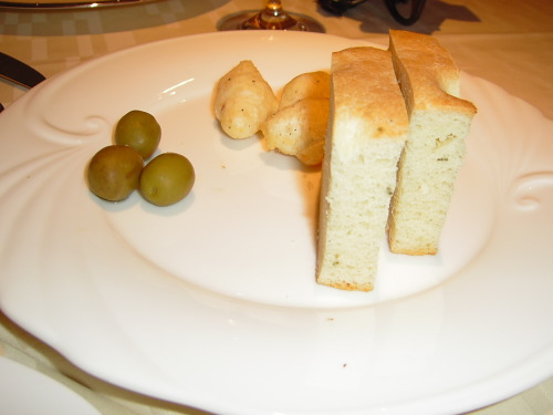まず、フォッカチャやオリーブが運ばれてきます。