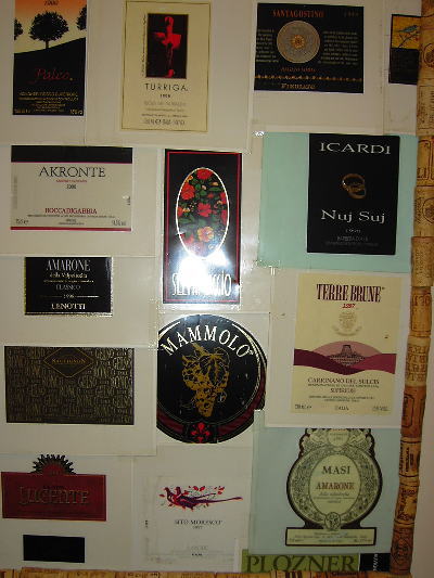 ワインのラベルを貼って、額の代わりにワインコルクを・・・化粧室横のインテリア。