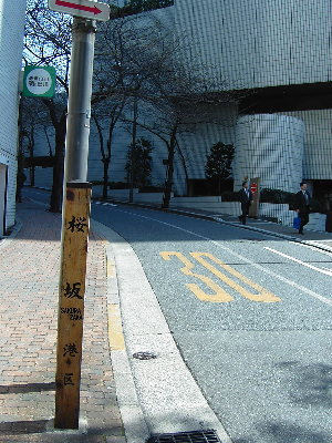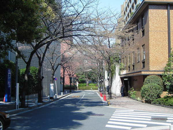 この手前の道を左に折れ、霊南坂教会前を通り過ぎ、くねくねと歩いて