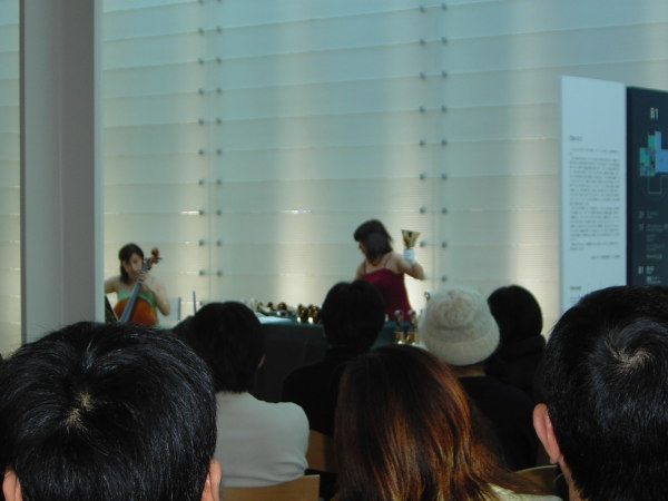 クリスマスのこの日、ハンドベルとチェロの演奏を楽しむことができました。