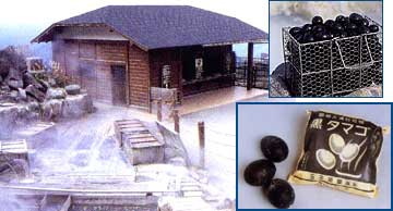 温泉でゆでてその後蒸しあげた黒玉子は大涌谷の名物で、ひとつ食せば7年も延命可能とか。