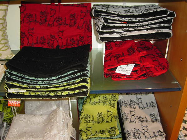 猫ちゃん柄のポットコージーや鍋つかみ、クッションカバー