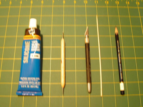 持った絵に仕上げるもの。準備する道具は、よく切れる先の細いカッター、シリコンの接着剤、鉛筆、竹串