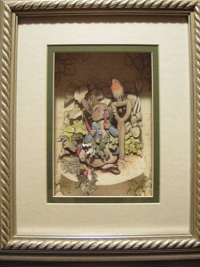 このピーター・ラビットは絵の部分が17cm×12cmです。皆さん木の額をお使いでしたが、このピーターには