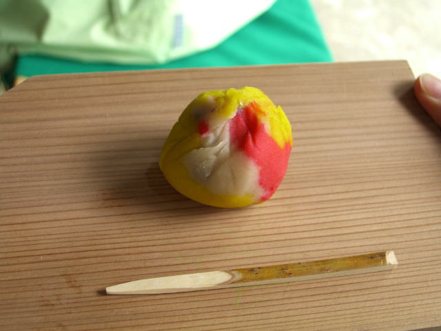 まぁ、お上手。練りきりの和菓子ですね。ちゃんと黒文字も用意されて・・・