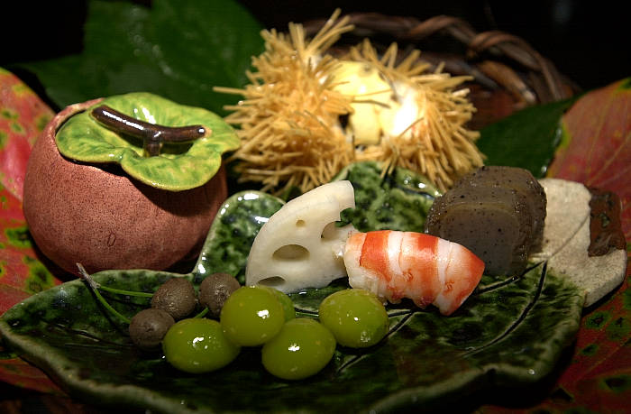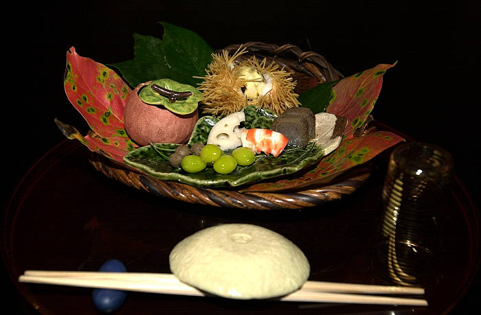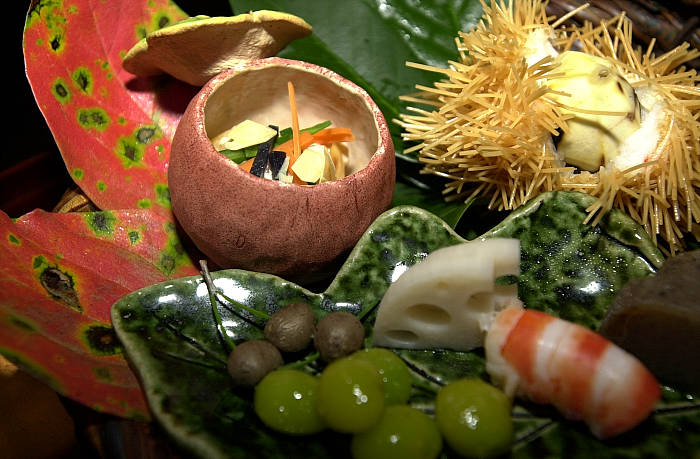 一 前菜 いが栗、銀杏、車えび他