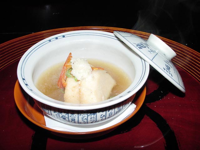 イタヤ貝真蒸 軸ホーレンソウ、椎茸、紅葉人参、柚子