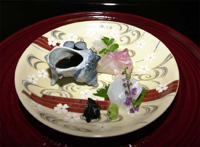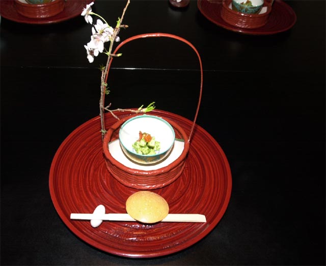 朱篭に葉桜付けて 向付 木ノメ和え イカ・竹乃子 |